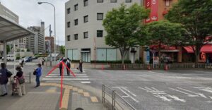 • 直進し横断歩道を渡ります