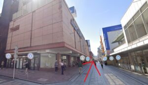 - クレアモール(商店街)の道に出たら右へ曲がります