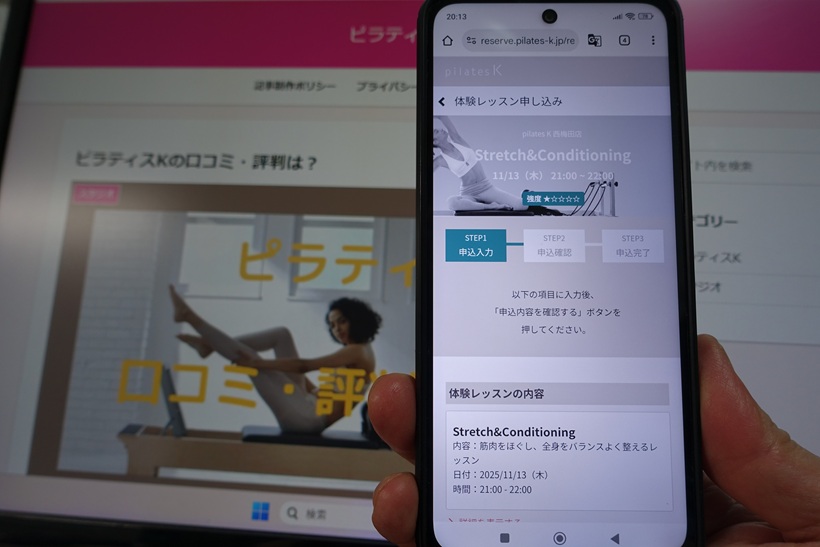 ピラティスK 西梅田店の体験レッスンの受講の流れは、