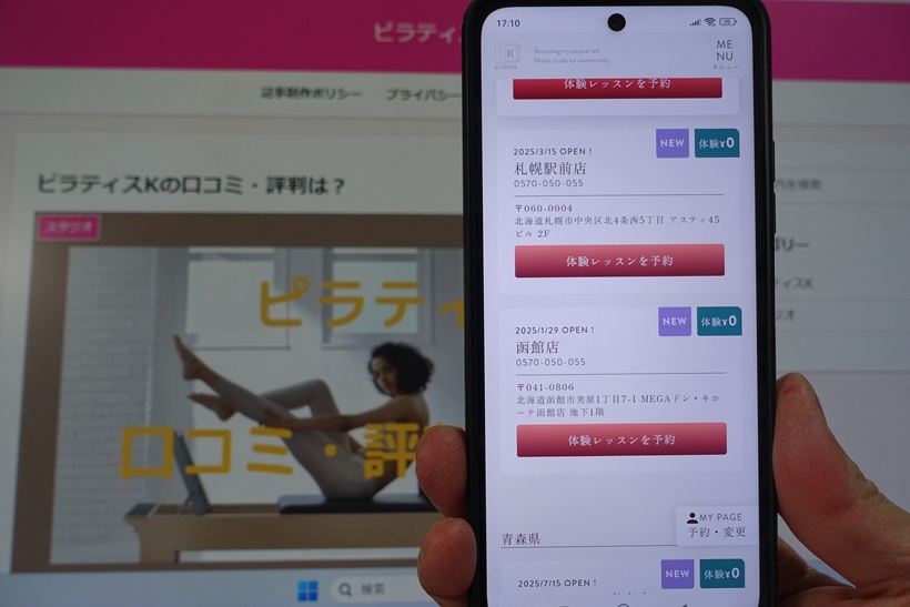 この記事では、ピラティスK 札幌駅前店(札幌市中央区)の利用者の口コミをもとに、体験レッスンの感想や予約の取りやすさなどリアルな評判を紹介しています。