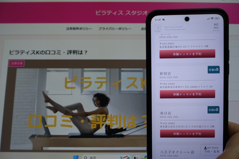 この記事では、ピラティスK 新宿店(東京都新宿区)の利用者の口コミをもとに、体験レッスンの感想や予約の取りやすさなどリアルな評判を紹介しています。
