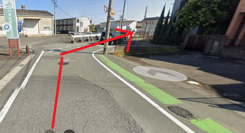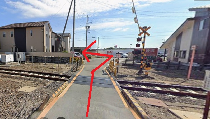 - 踏切の先つきあたりを左へ
