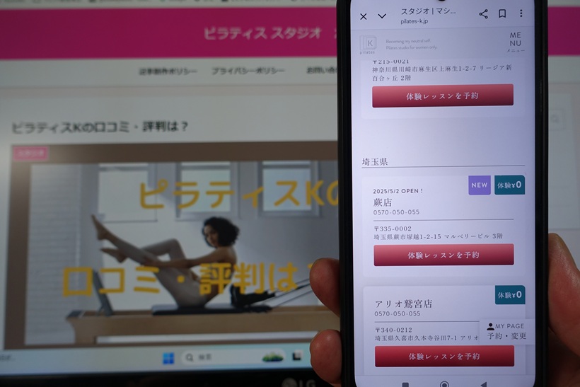 ピラティスK 蕨店と近隣のマシンピラティス2店舗を比較!