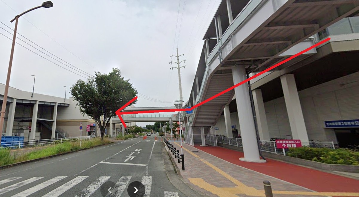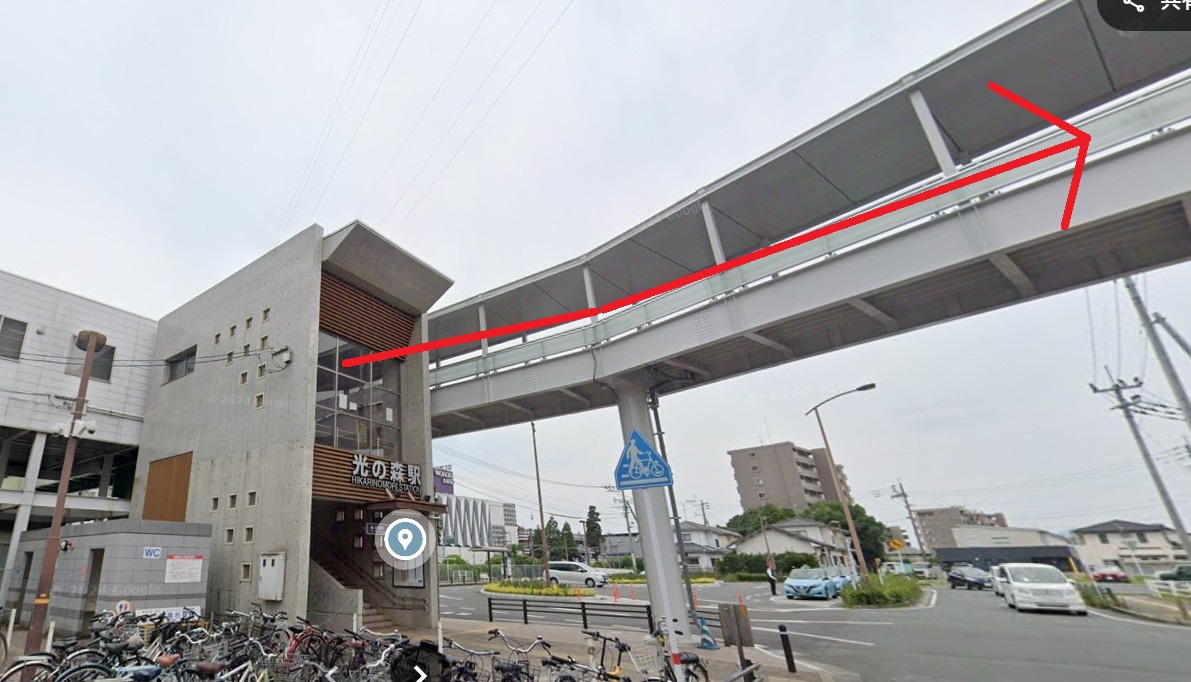 - JR「光の森駅」北口を出て連絡通路を進みます