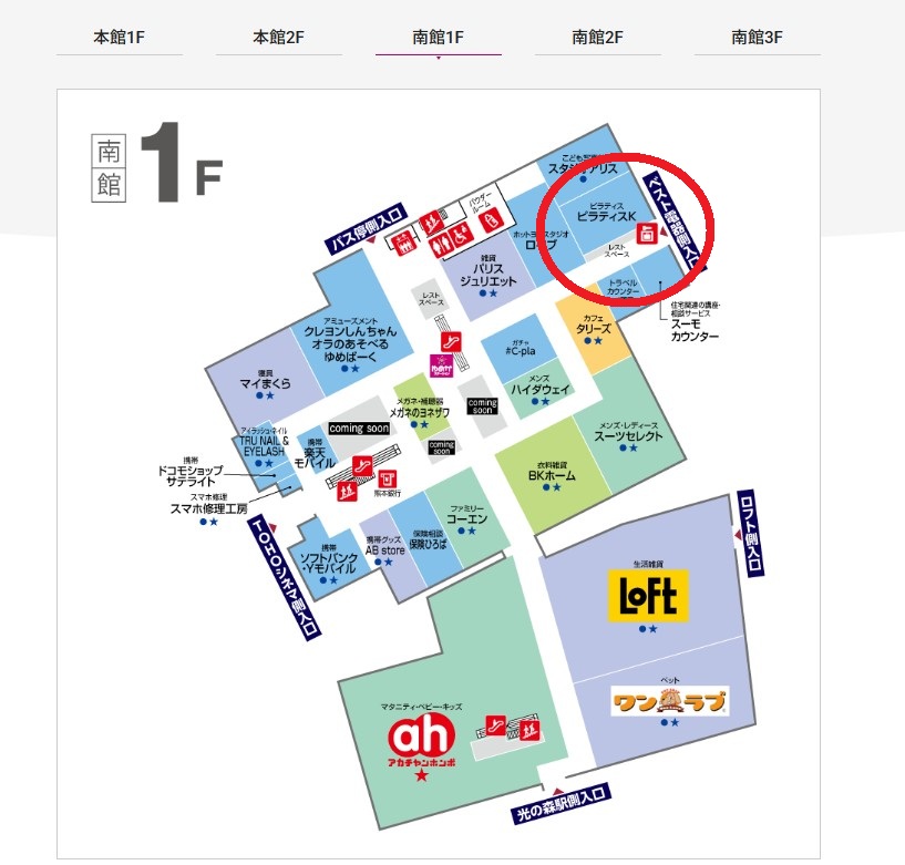 ピラティスK ゆめタウン光の森店までのアクセス