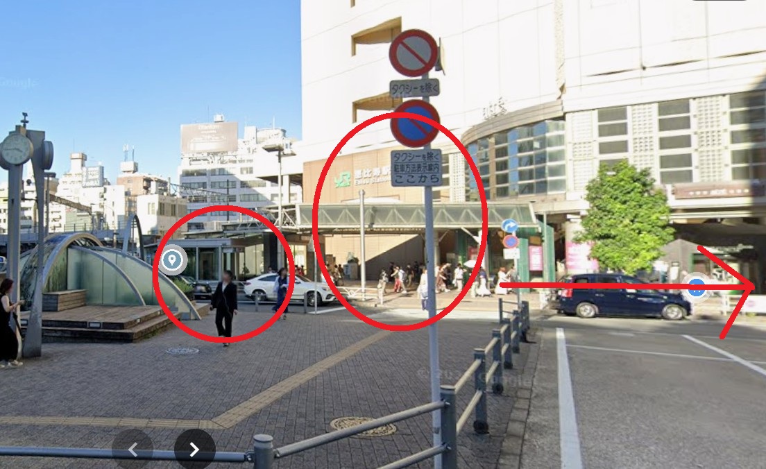 - JR「恵比寿駅」西口または東京メトロ「恵比寿駅」1番出口を出て目黒方向へ進みます