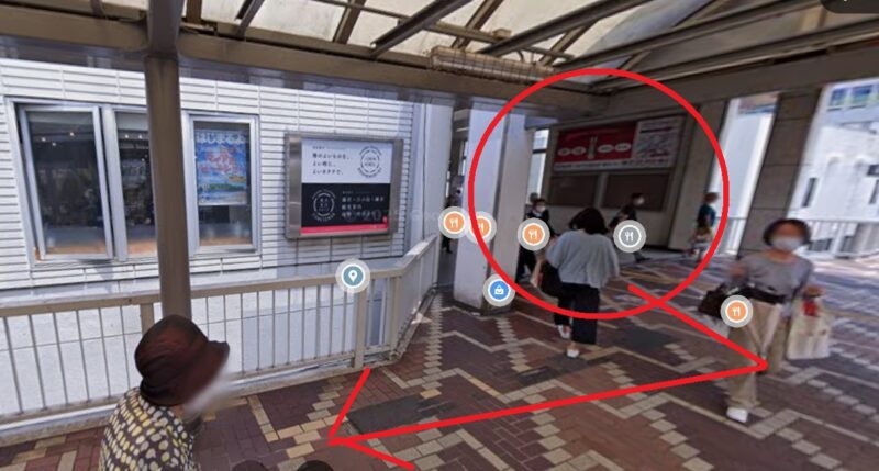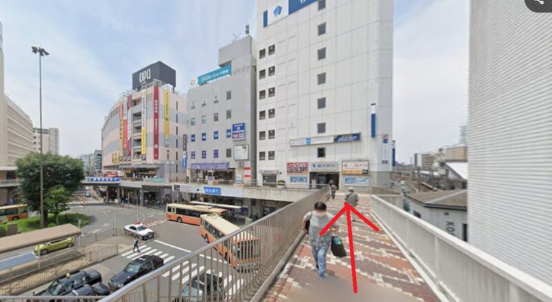 - 南口を右へ出てデッキを進みます
