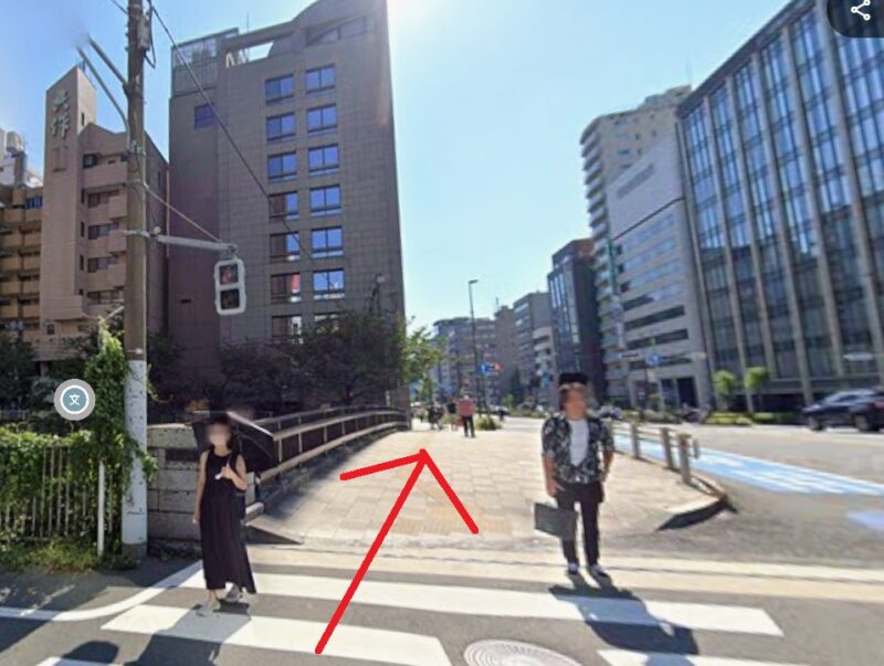 - 目黒川沿いの道を左に曲がります