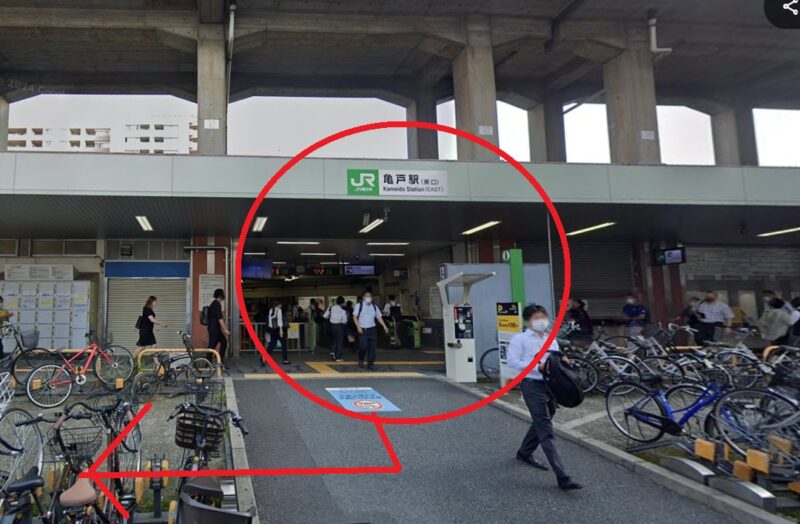 - JR「亀戸駅」東口を出たら右へ