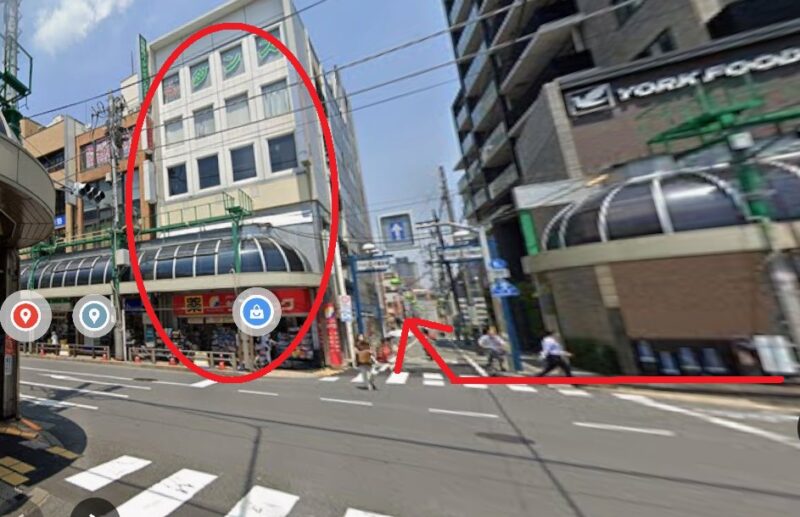 • ヨークフーズの先の「柏光ビル」の4階 入り口は右に曲がったところにあります
