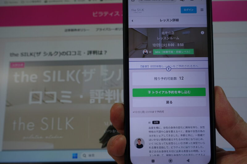 the SILKの体験レッスン申し込みページにも「トライアル予約数に限りがあり入会を検討している人優先」である旨の記載があり事前に電話で意向を聞きたかったと思われますが、口コミにあるとおり伝え方には配慮が欲しいですね。