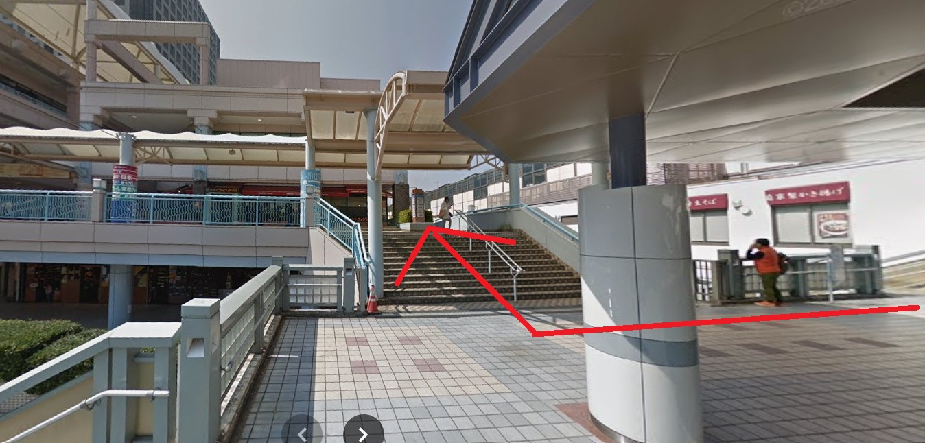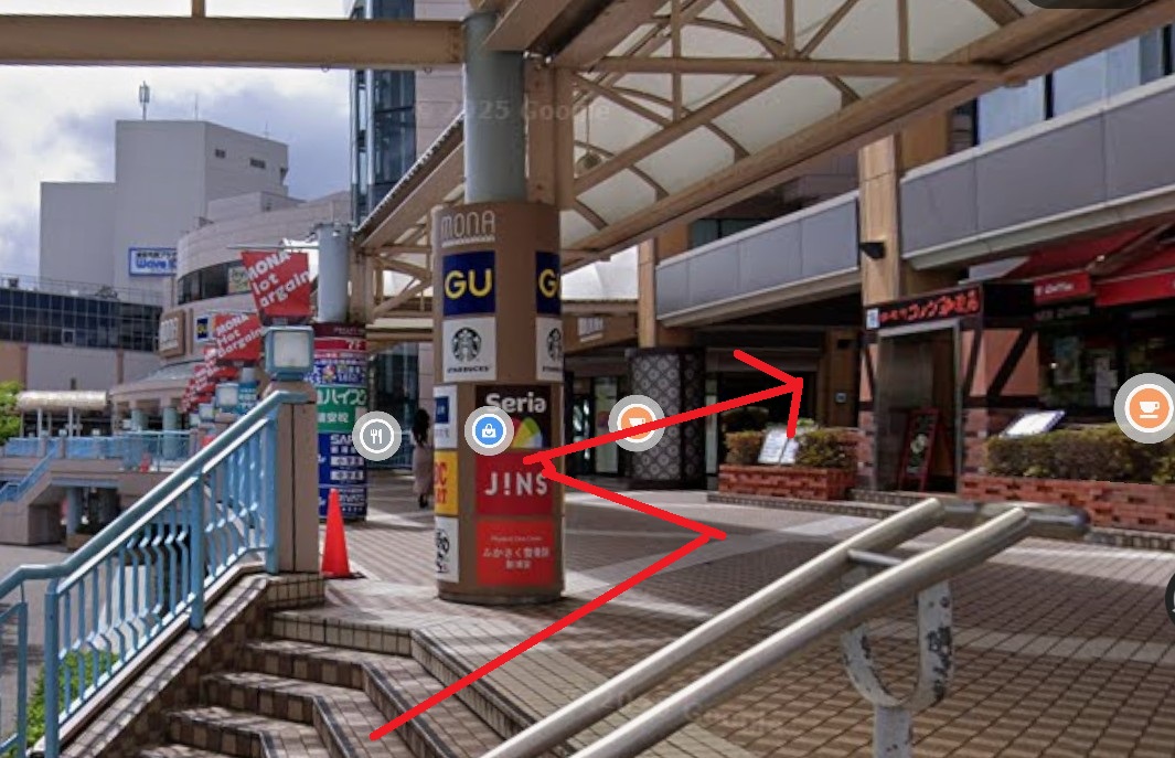 - 右手の階段を上がり「新浦安mona(ショッピングセンター)」へ