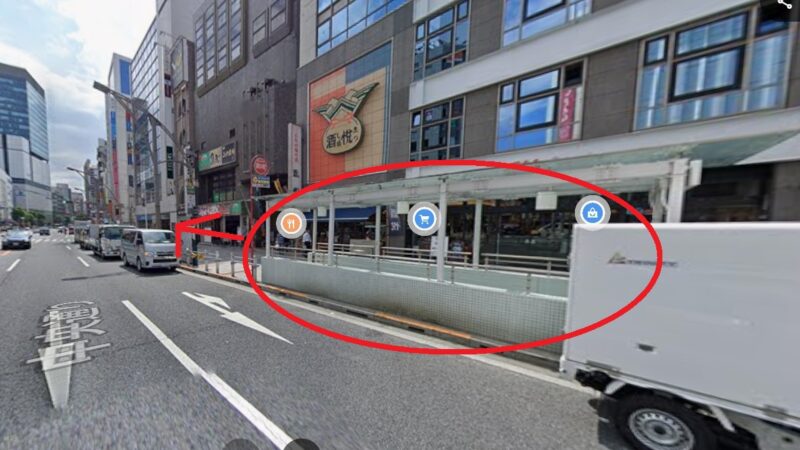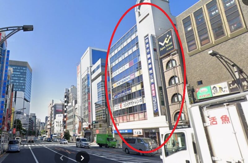 - 少し先に見えている「ヒューリック・損保ジャパン 上野共同ビル」の3階になります